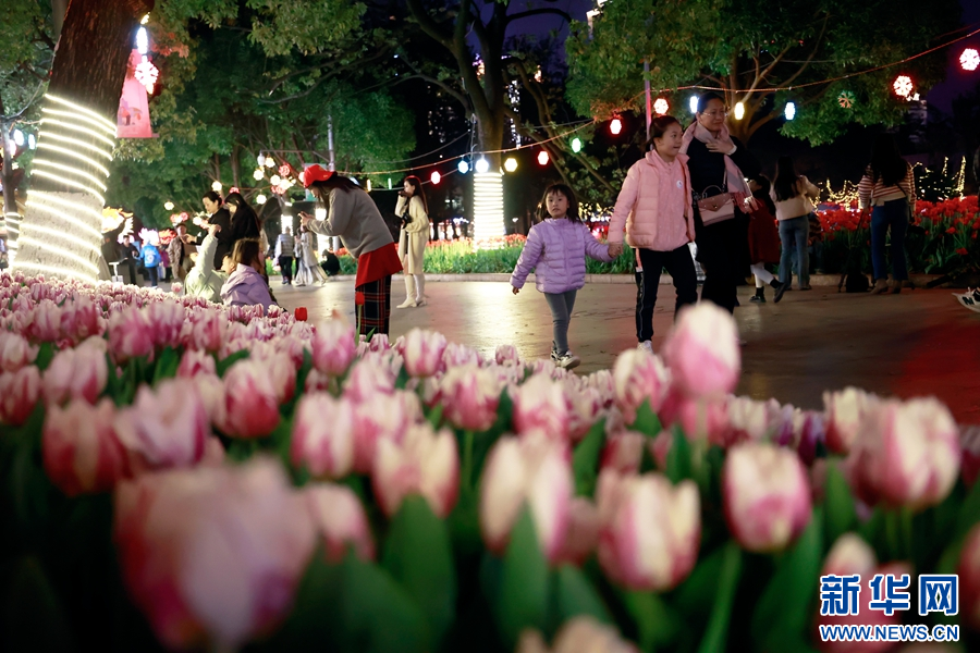 除了異彩紛呈、爭奇斗艷的花燈,翠湖公園里同期還舉辦了郁金香花展,并設置了多條星光夜市?;翳?、花海爛漫,吸引了眾多游客的到來。