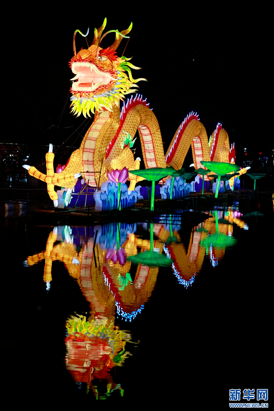 翠湖公園里的“龍騰盛世”主題水面燈光秀(攝于2月21日)。新華網發 (丁凝 攝)