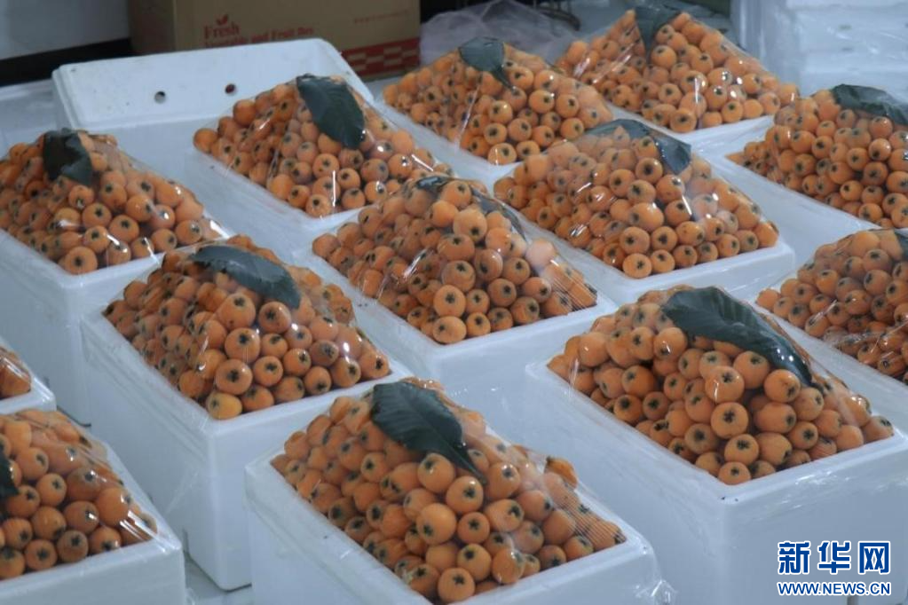 打包裝箱的枇杷等待發出(2024年2月2日攝)。