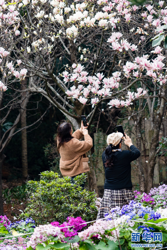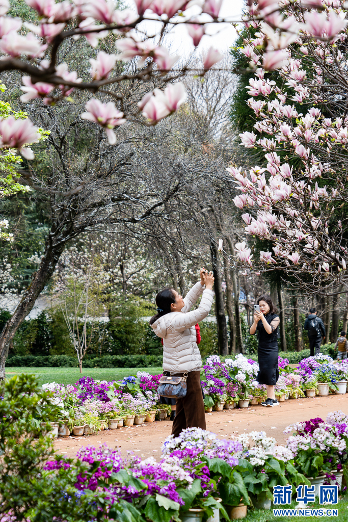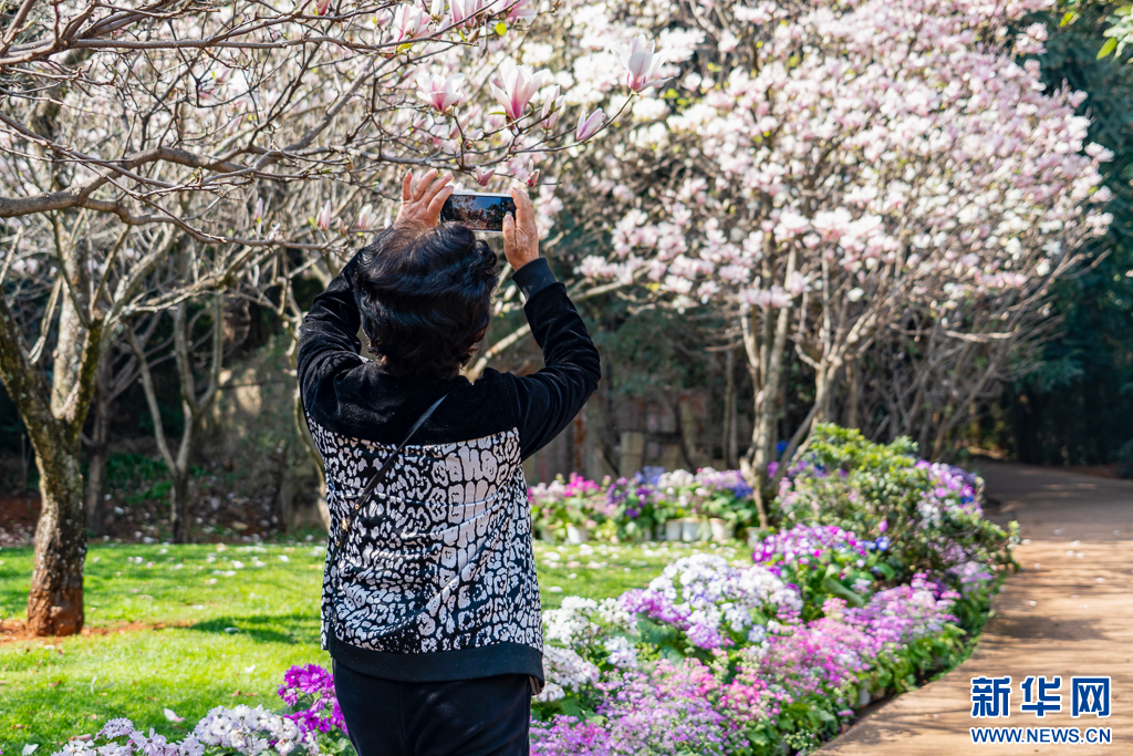 近日,云南省昆明市各處的玉蘭花陸續進入盛放期,不同品種和顏色的玉蘭在春日里次第綻放,美不勝收。