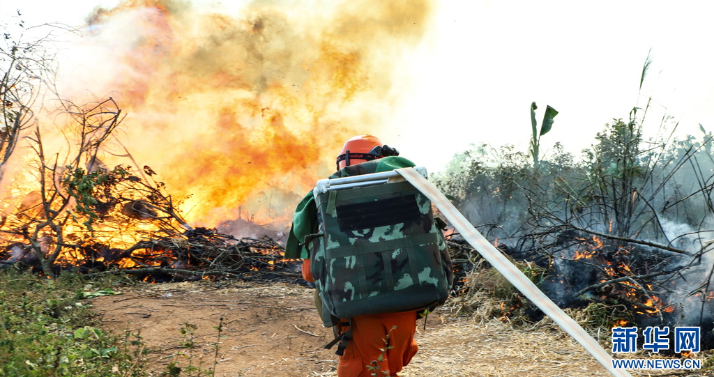 消防員快速接近火線(2月29日攝)。新華網發(路言 攝)