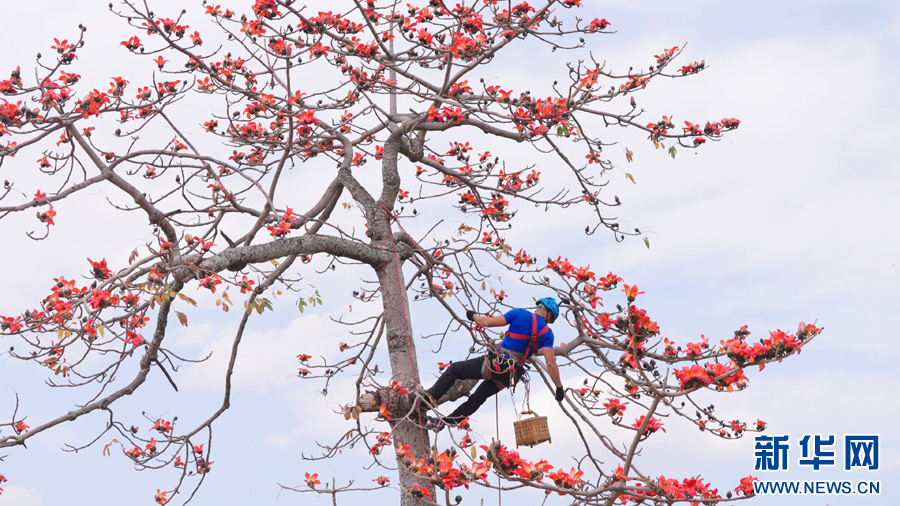 早春時節,在云南省楚雄彝族自治州武定縣己衣鎮,山嶺間攀枝花開得紅紅火火。攀枝花也稱木棉,每年一月份開花,花期可以延續到四月份。攀枝花不僅可觀賞,還可做菜,涼拌攀枝花不僅口感好,還清熱利濕,是當地一道不容錯過的美食!(武學成 余林強)