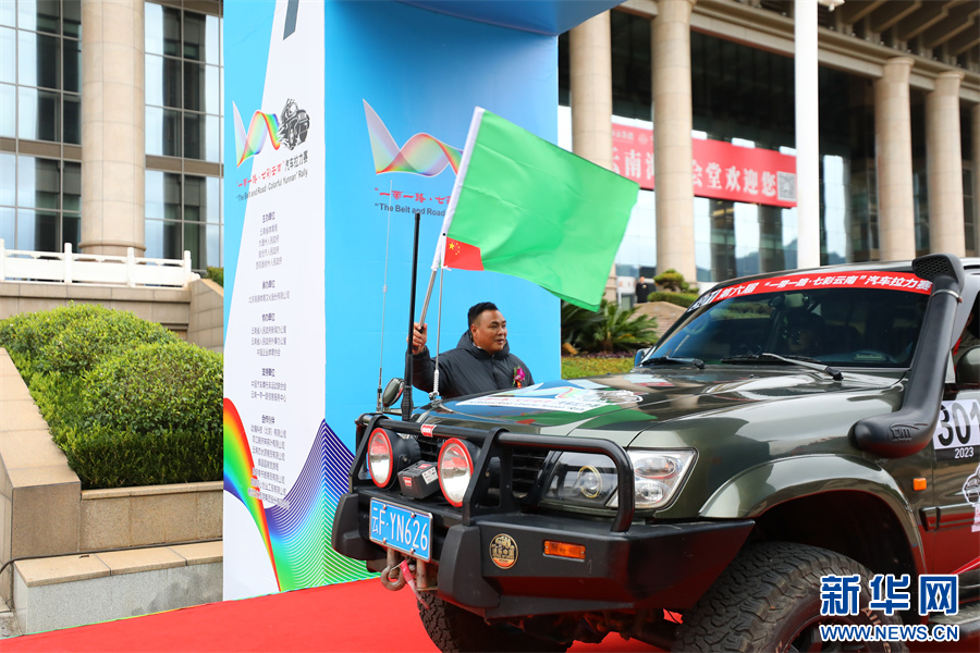 第六屆“一帶一路?七彩云南”汽車拉力賽發車儀式現場(2023年11月16日攝)。新華網發(賽事組委會 供圖)