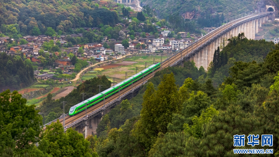 “復興號”動車組列車運行在中老鐵路中國段線路上(資料圖)。新華網發(徐章位 攝)