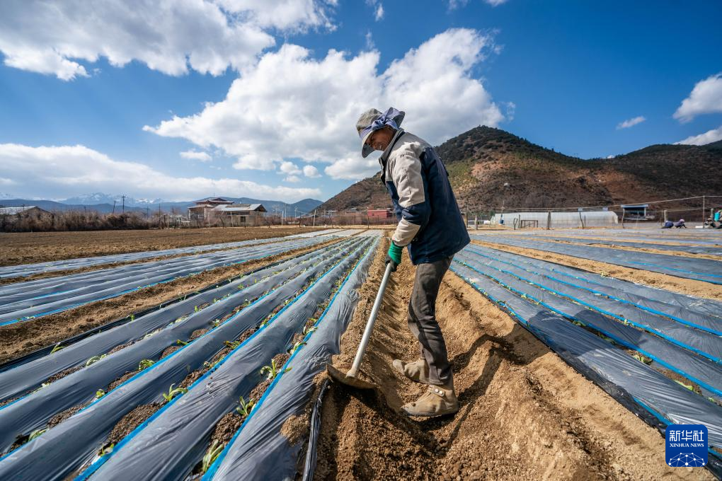 隨著氣溫不斷回升,云南省迪慶藏族自治州香格里拉市進入春耕階段,田間一派農忙景象。