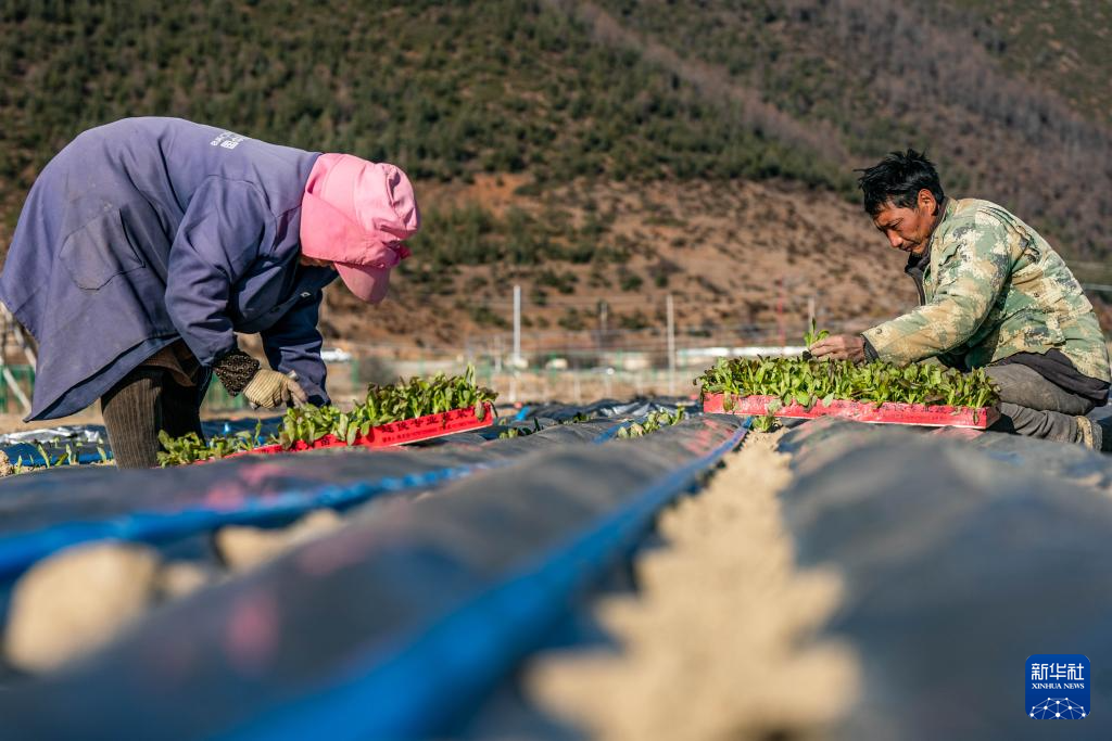 3月9日,在香格里拉市建塘鎮,農民在種植萵筍。
