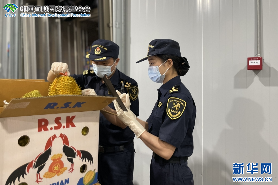 海關工作人員正在對入場貨物進行查驗(資料圖)。新華網發(勐臘海關 供圖)