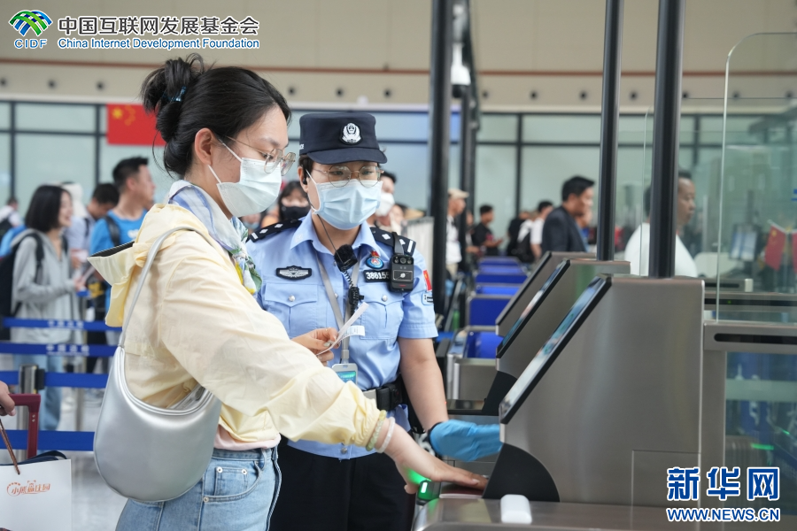 磨憨站內,游客正通過快捷通道安檢入站(4月3日攝)。新華網發(劉云 攝)