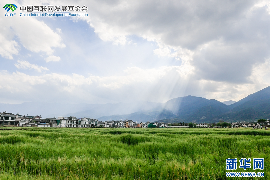 大理喜洲,風吹麥浪,一派田園好風光(攝于4月1日)。新華網 趙普凡 攝