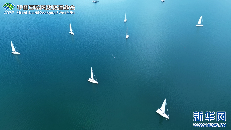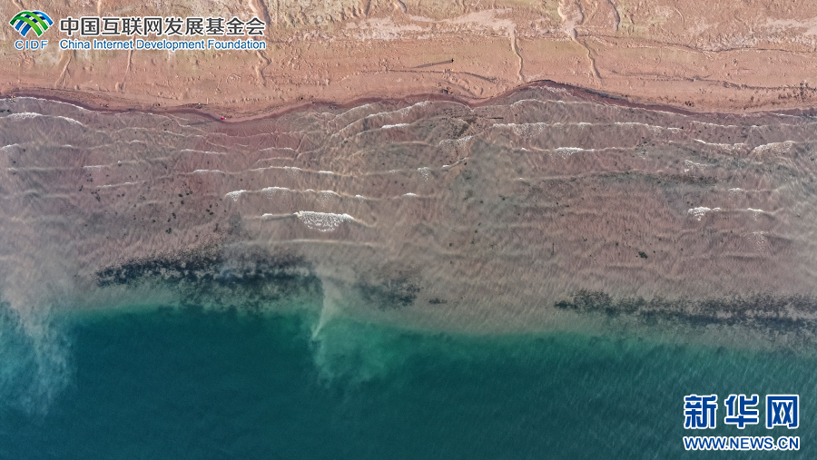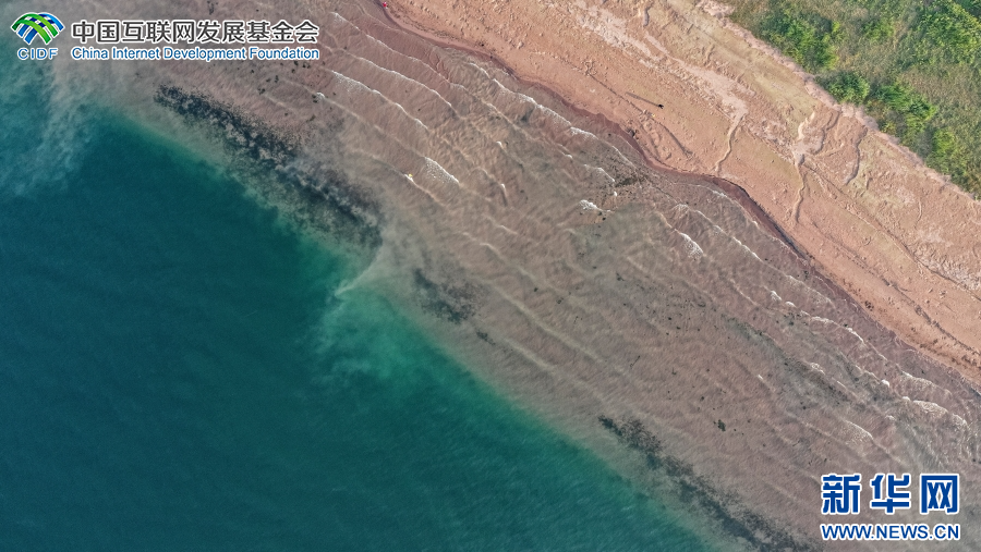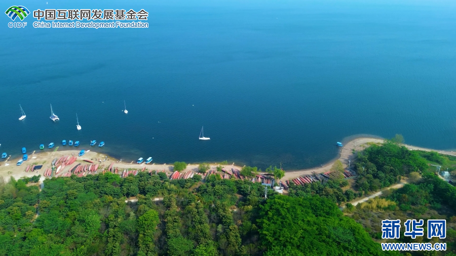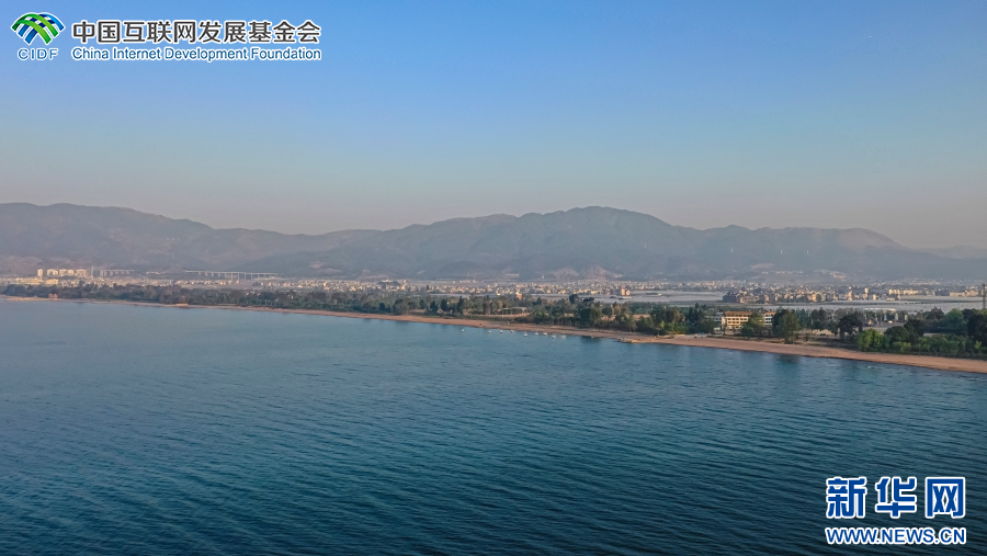 航拍撫仙湖,碧波蕩漾湖水拍岸(4月4日攝)。新華網發(楊洪龍 攝)