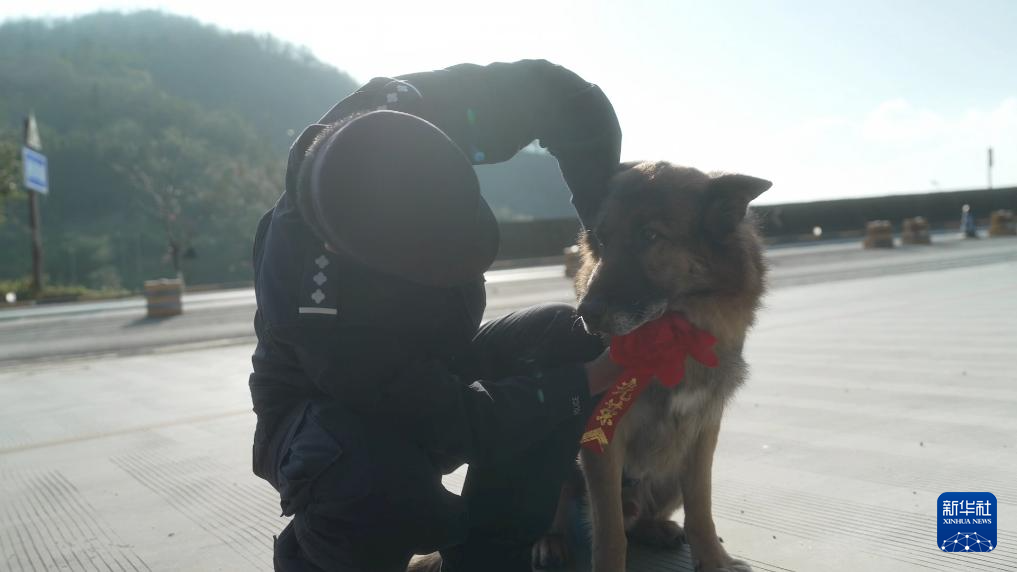 警犬“龍虎”光榮退役 “后輩”銜來大紅花