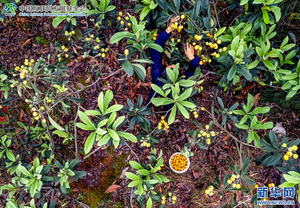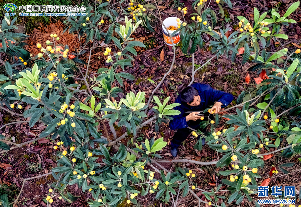 果農正在采摘枇杷(4月5日攝)。新華網發(曾三東 攝)