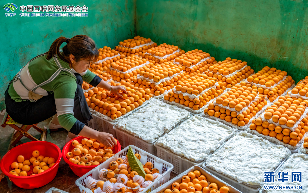 果農正在挑選打包枇杷(4月5日攝)。新華網發(曾三東 攝)