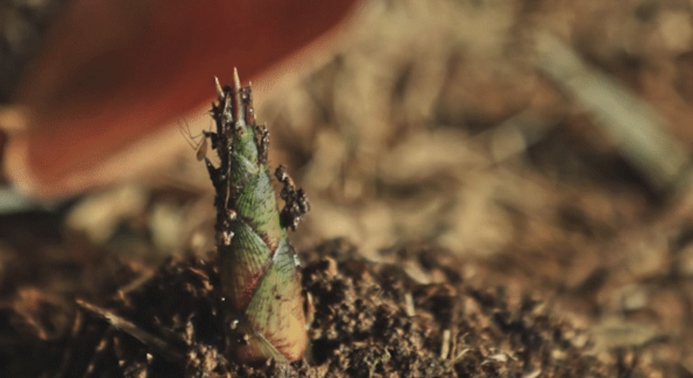 近日,云南省昭通市大關縣的攝影愛好者走進筇竹林,用10天的時間,記錄下筇竹筍破土而出,不斷生長的視頻。鏡頭里的筇竹筍,每天傍晚開始“吐”露珠,太陽升起時又消失,吸引了周圍的昆蟲前來飲食。(完)(陳紹金 何桂花 唐應平 汪朗)