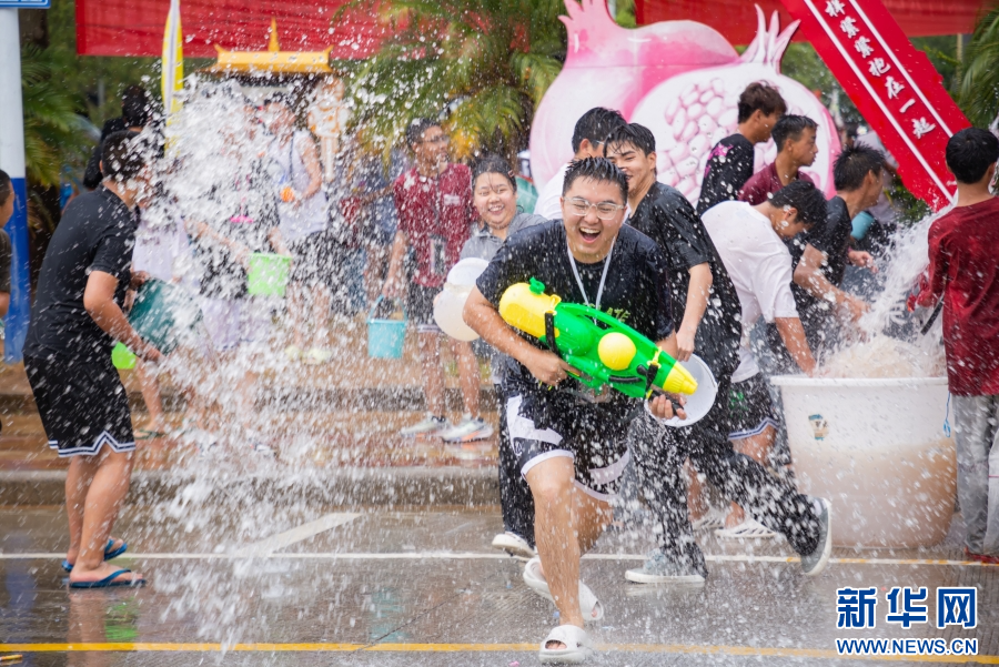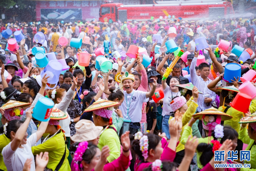 近日,云南省德宏傣族景頗族自治州梁河縣舉行2024年潑水狂歡節。當地各族群眾和游客載歌載舞,相互潑灑著代表幸福、吉祥的水,表達無限祝福。(完)