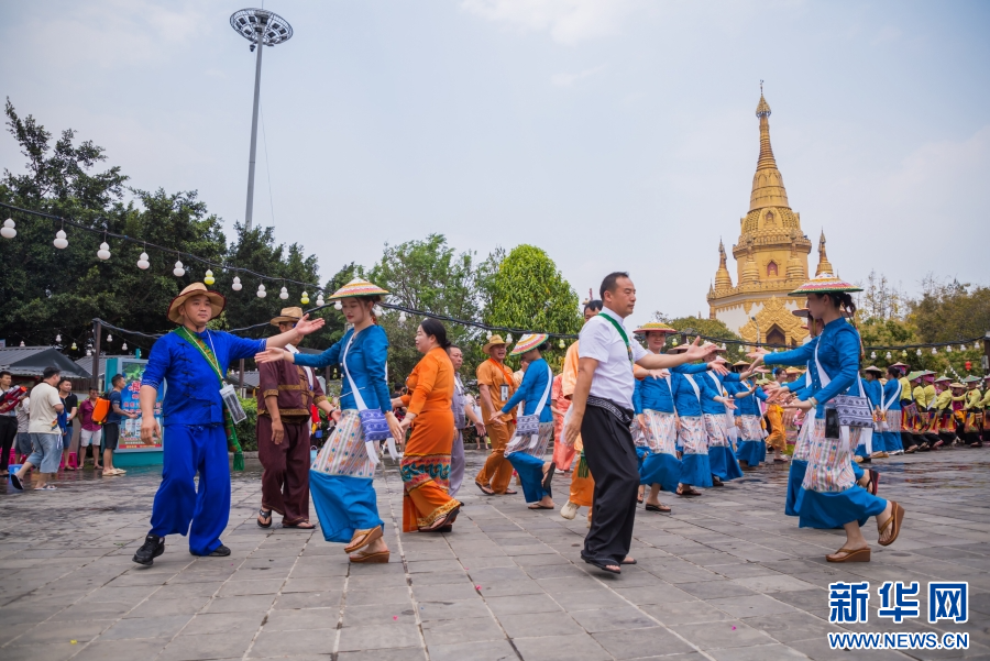 云南德宏梁河各族群眾歡度潑水節(4月12日攝)。新華網發(梁河縣融媒體中心供圖)