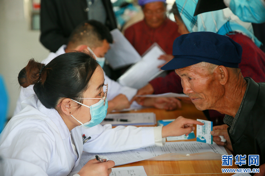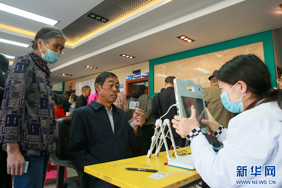 在云南省曲靖市沾益區金龍街道社區衛生服務中心,醫護人員為老年人開展健康評估(4月10日攝)。新華網發(楊俊鵬 攝)
