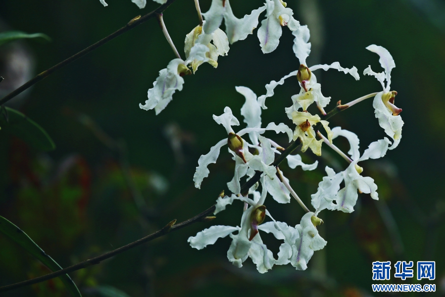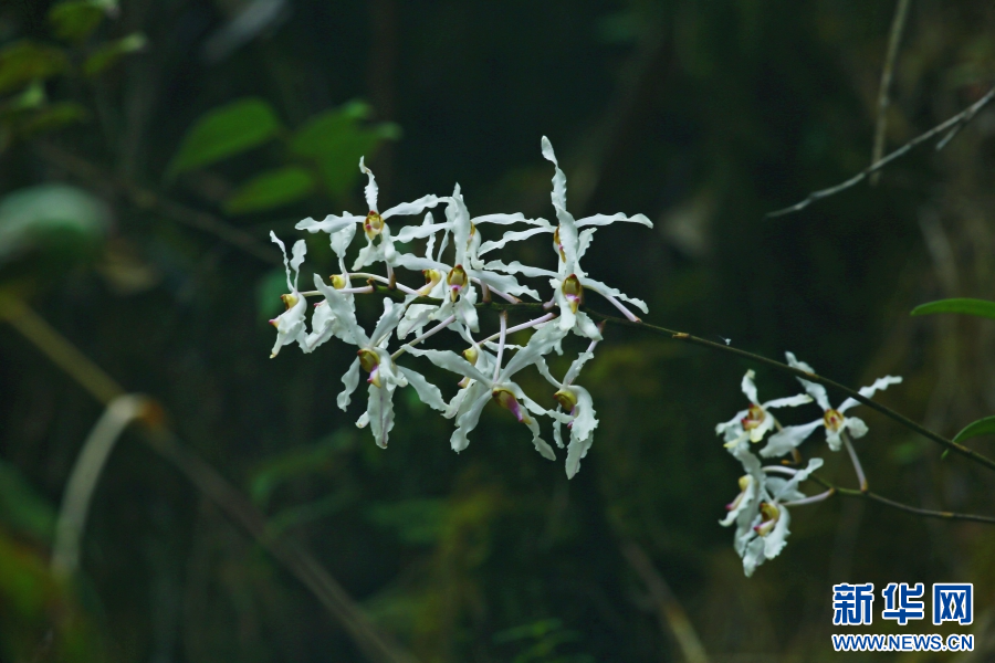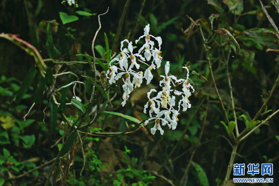 據了解,白花擬萬代蘭花型結構很特別,花序可長達0.5米,其堅挺的莖桿最長超過1米,花朵簇擁開放,宛若飄逸的“空中花籃”。白花擬萬代蘭主要靠氣根和莖葉獲取空氣中的水分和汲取腐葉和動物糞便中的養分來維系生長。(完)(郁云江 楊榮廷 李開平)