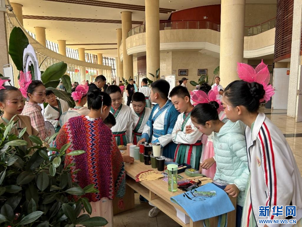 青少年在普洱大劇院劇場內觀看廉潔文創產品。
