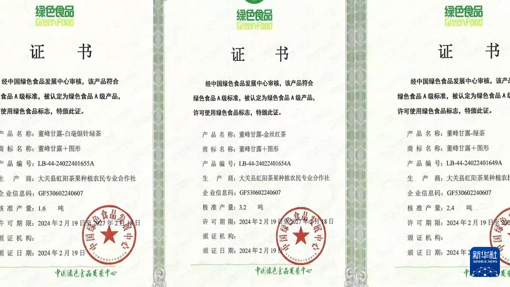 2024年2月,該合作社的十個茶產品通過中國綠色食品發展中心認證,一次性取得十張“綠色食品證書”。