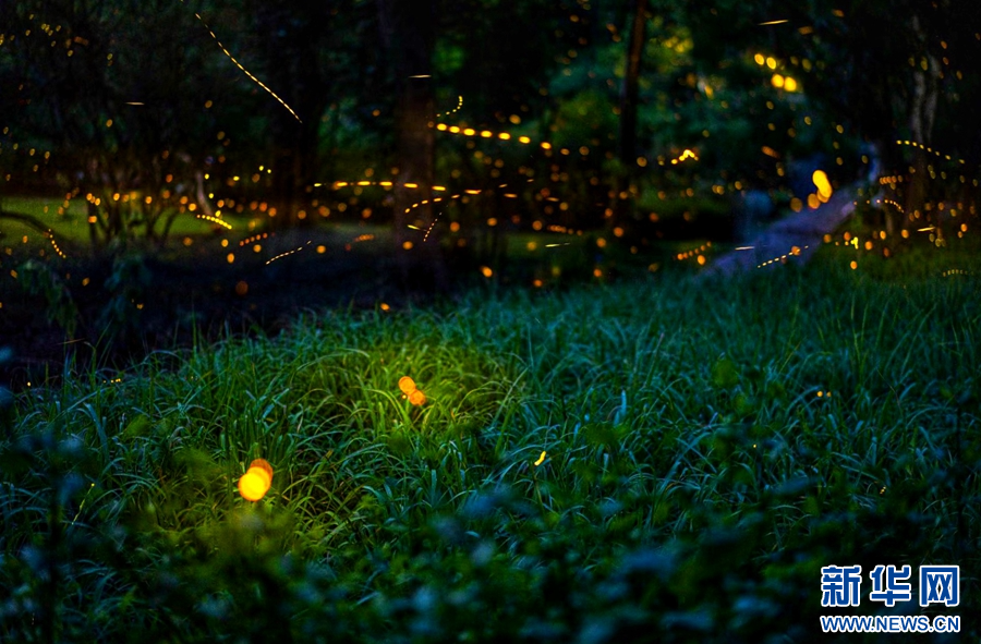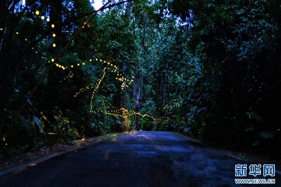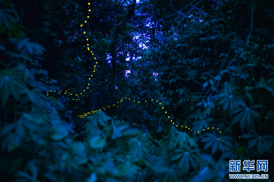 中國科學院西雙版納熱帶植物園,流螢飛舞,星星點點,如夢如幻(攝于4月20日)。新華網發(張嬌嬌 攝)