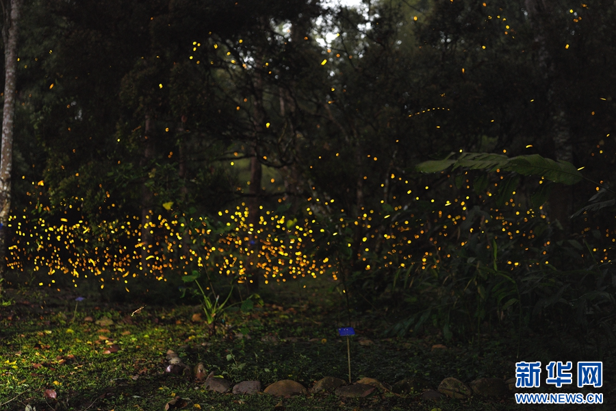 中國科學院西雙版納熱帶植物園,流螢飛舞,星星點點,如夢如幻(攝于4月23日)。新華網發(張嬌嬌 攝)