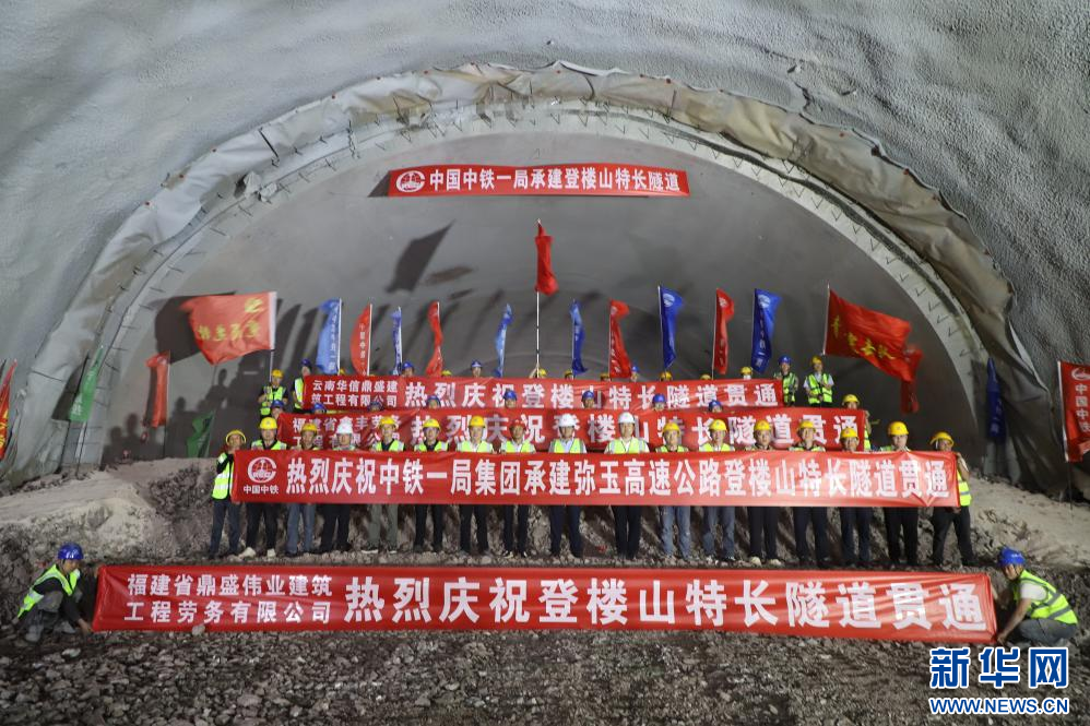 新華網昆明5月1日電(記者 丁怡全)近日,云南省彌(勒)玉(溪)高速公路登樓山特長隧道實現貫通。