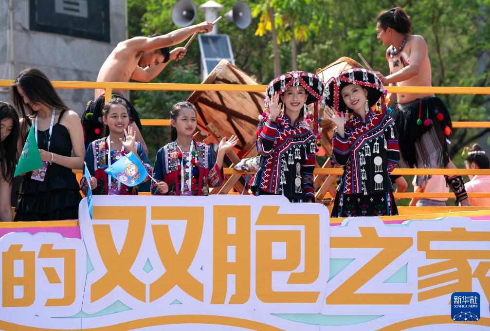 雙胞胎們在云南墨江參加雙胞胎風情巡游活動(5月2日攝)。新華社記者陳欣波 攝