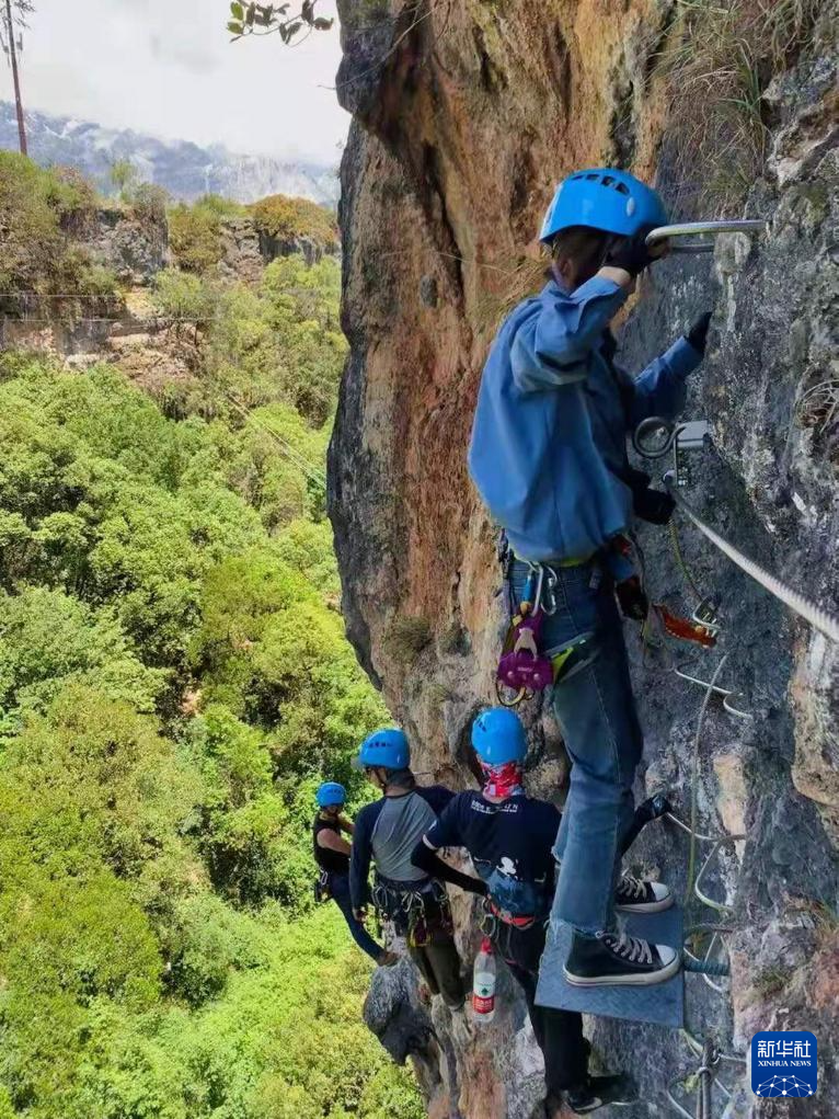 “腳下萬丈懸崖,放眼無盡風光,看著自己一步一步向前,而峭壁一點點被甩在身后,心中燃起滿滿的自信?!斌w驗完東巴谷攀巖運動的陜西游客張偉激動地說。