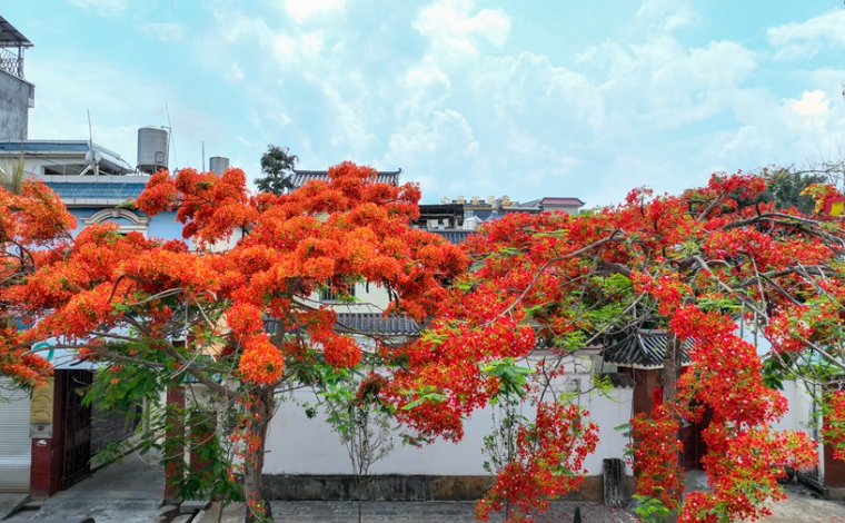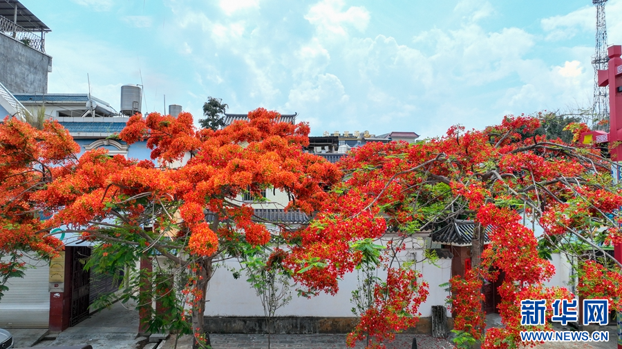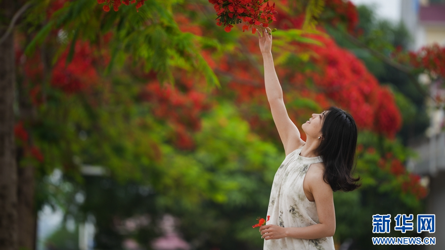 鳳凰花盛開引游人拍照打卡(5月10日攝)。新華網發(尹興朋 攝)