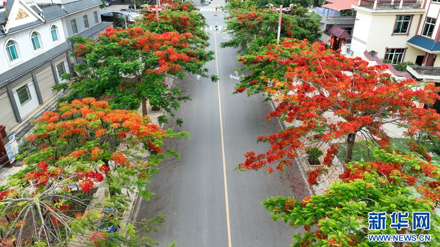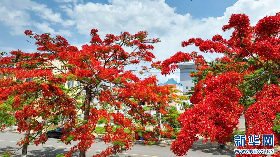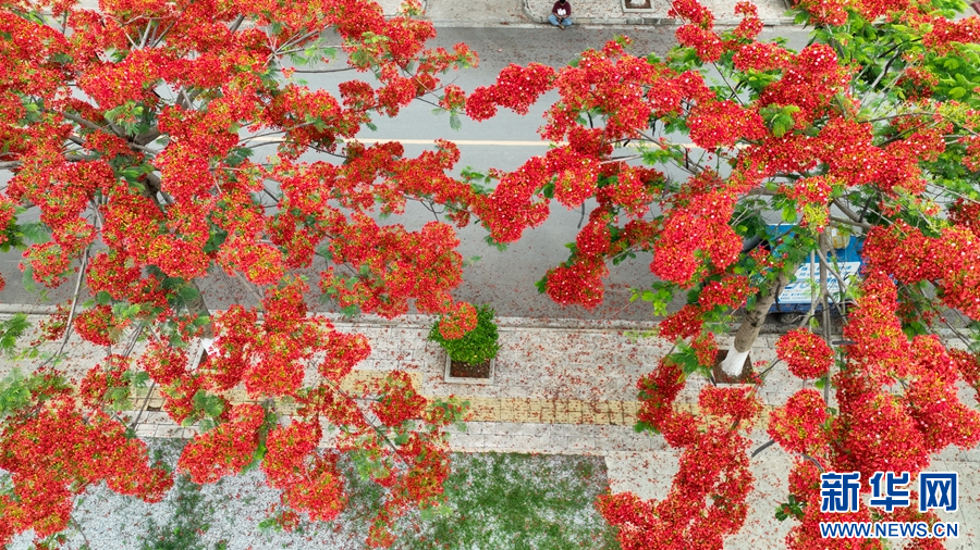 鳳凰花盛開點綴街景(5月10日攝)。新華網發(尹興朋 攝)
