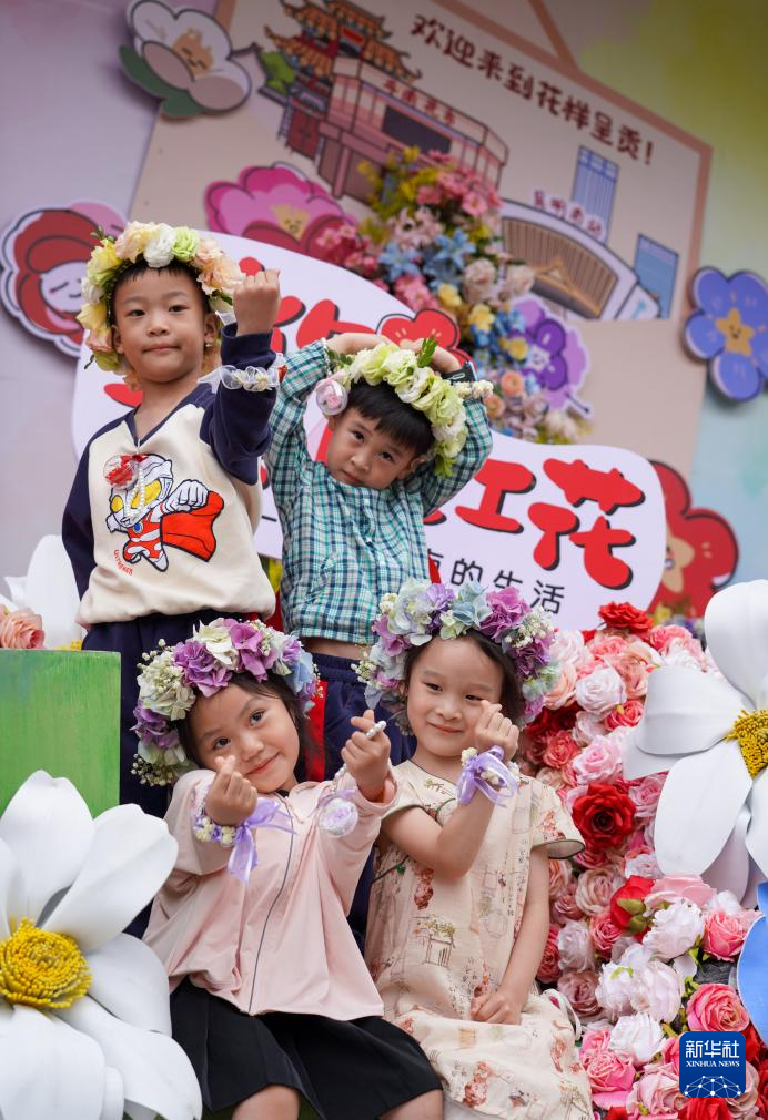 5月15日,來自四川的游客在昆明斗南花卉交易市場外拍照打卡。新華社記者 王靜頤 攝