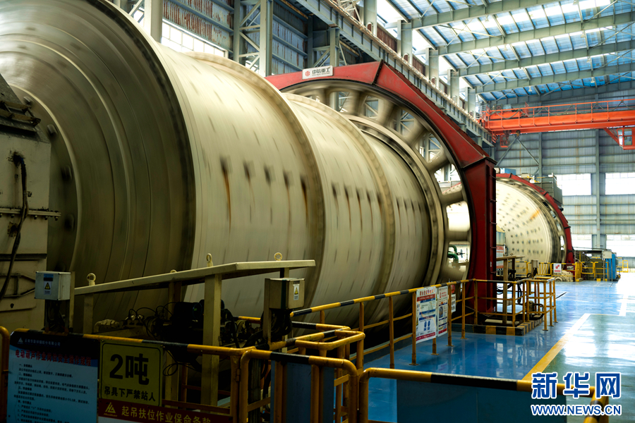 華聯鋅銦新田選礦車間內正在運行的球磨機(3月6日攝)。新華網發(劉起 攝)