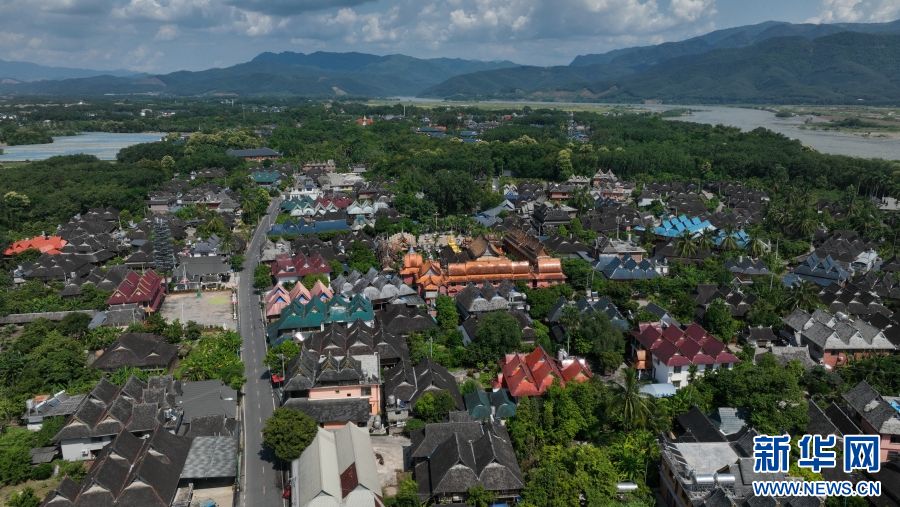 航拍視角下的西雙版納傣族園景區(2023年9月14日攝)。新華網發(劉云 攝)