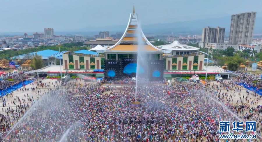 芒市潑水節熱鬧開幕(4月12日攝)。新華網發(芒市融媒體中心供圖)