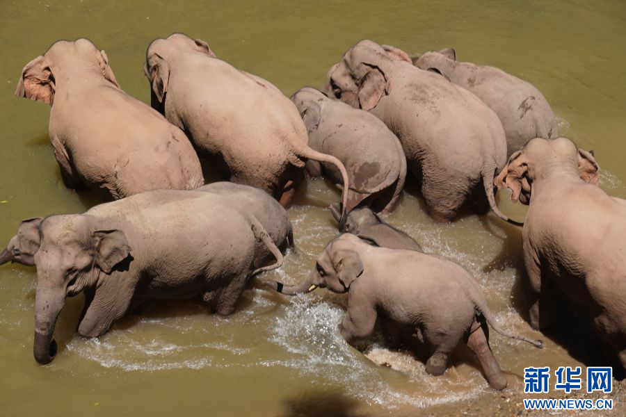 野象家族齊聚野象谷戲水(資料圖)。新華網發(柴靜 攝)