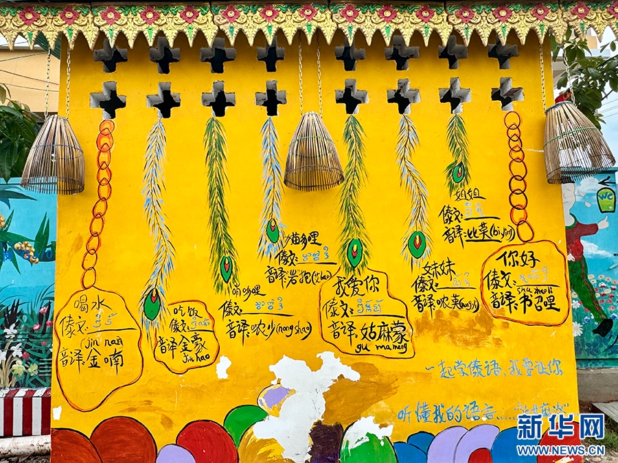 尚岡村內具有傣族特色的打卡墻(5月16日攝)。新華網發(李娜 攝)