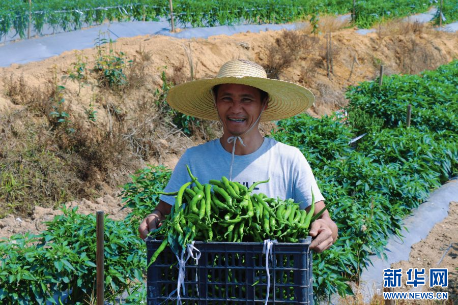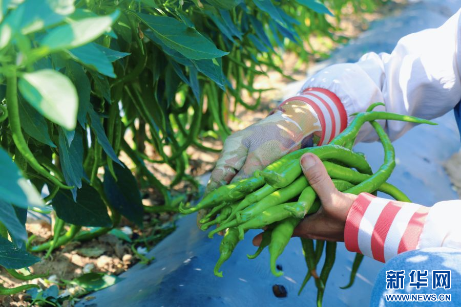 采摘工人正在采摘辣椒(攝于5月14日)。新華網發(景谷縣融媒體中心供圖)