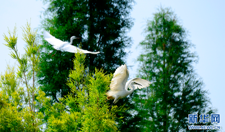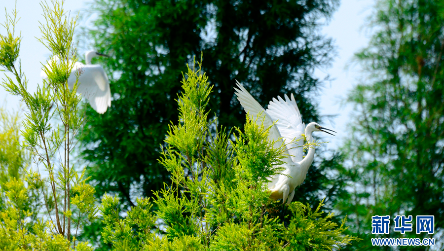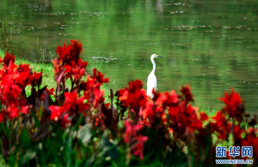 云南省紅河哈尼族彝族自治州彌勒市甸溪河濕地公園,白鷺立于河畔(5月18日攝)。新華網發(普佳勇 攝)