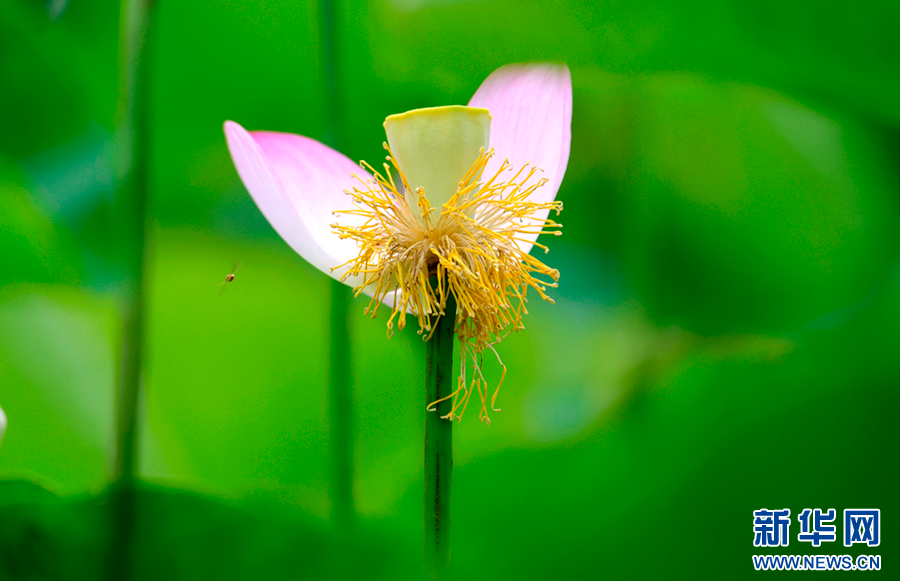 云南省紅河哈尼族彝族自治州彌勒市甸溪河濕地公園,荷花花瓣凋落(5月18日攝)。新華網發(普佳勇 攝)