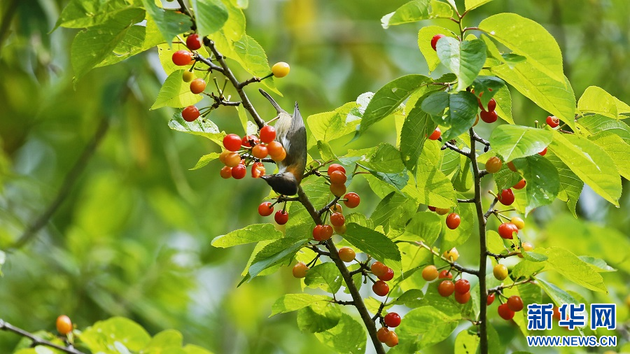 在云南省保山市龍陵縣的山野上,零星分布的櫻桃紅了。走進細看,一顆顆黃中帶紅、紅中帶亮的櫻桃綴滿枝頭,引來了唧唧喳喳的小鳥兒們前來搶“鮮”。近日,當地攝影愛好者用相機拍到了幾段黃頸鳳鹛在枝頭吃紅櫻桃的有趣畫面。(完)