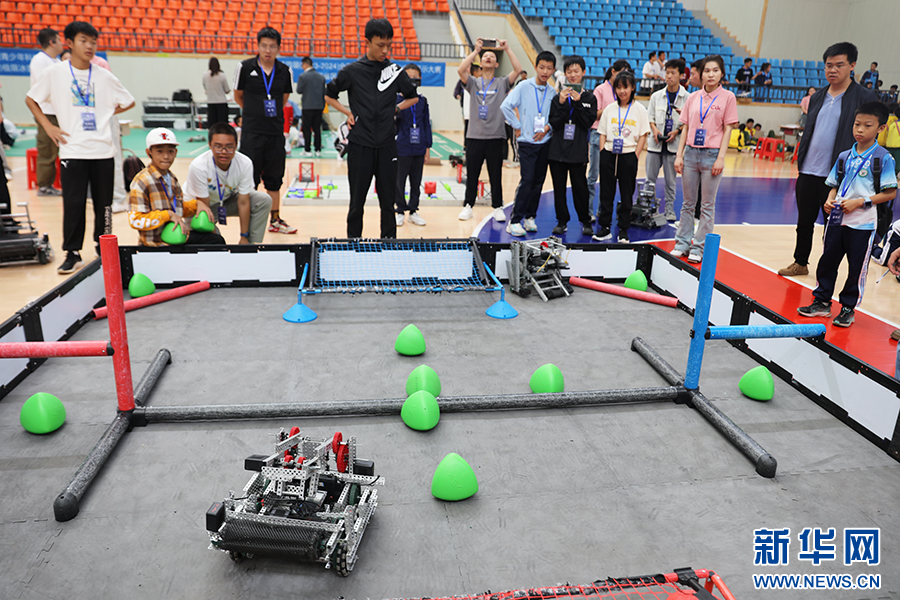 活動現場,無人機綜合應用接力挑戰、極限冰壺科技挑戰賽等比賽項目如火如荼進行,多個學校學生積極組隊參賽。隨著倒計時,學生們爭分奪秒,操縱手中遙控,控制機器實行抓取、行進等一系列動作,集中展示科技素養。