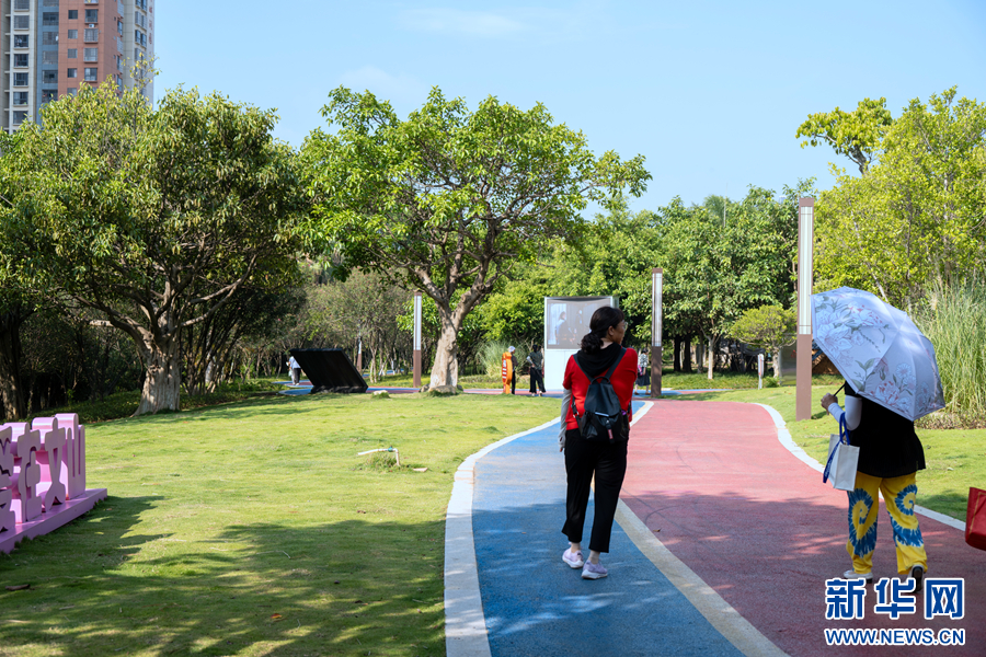 市民走在盤龍河健康綠道上(5月23日攝)。新華網發(劉起 攝)