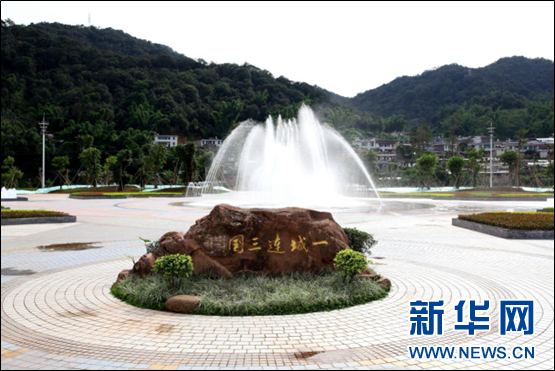 圖為江城縣“一城連三國”地標。(江城縣融媒體中心供圖,資料圖片)