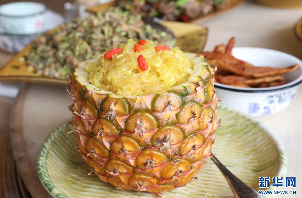 菠蘿美食糯米飯(5月20日攝)。新華網發(景谷縣融媒體中心供圖)
