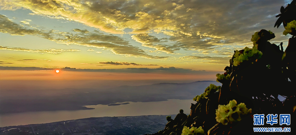 近日,攝影師在云南省大理白族自治州蒼山頂峰,記錄下令人震撼的自然畫卷。清晨,伴著山頂漸次盛放的杜鵑花,第一縷陽光破云而出,朝霞如錦,將天空染上金色、橘紅,與杜鵑花相互映照交融,從這里,遠眺幽藍的洱海,一幅多彩的畫卷躍然眼前。(完)(大理市融媒體中心 趙正銀)