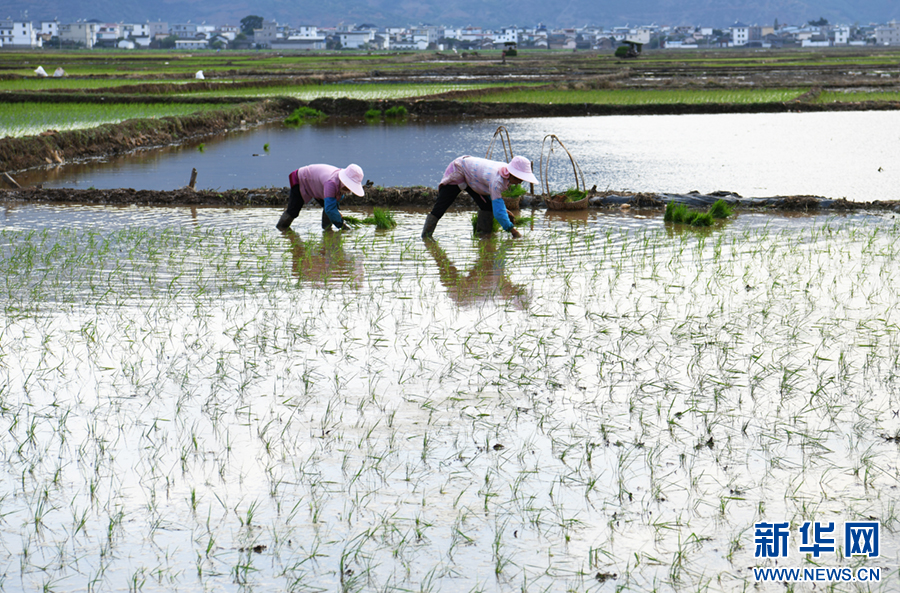 近日,走進素有“滇西北糧倉”美譽的云南省麗江市永勝縣三川鎮,放眼望去,連片秧田透出淡淡綠意,水稻栽插工作正有條不紊地進行。