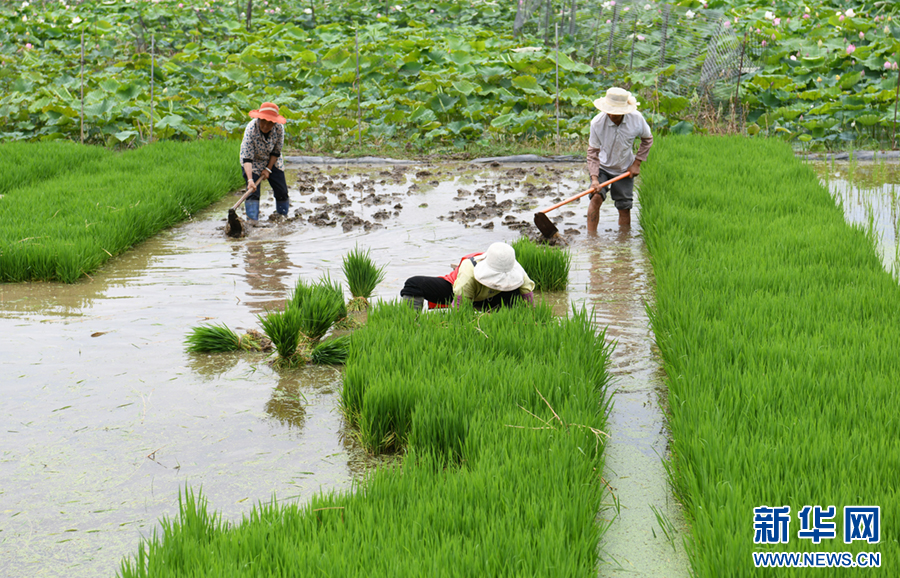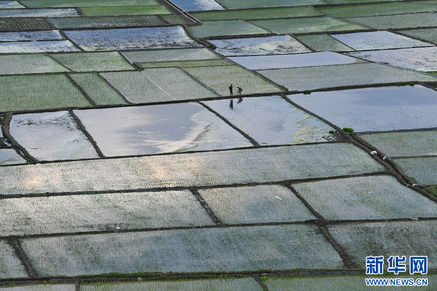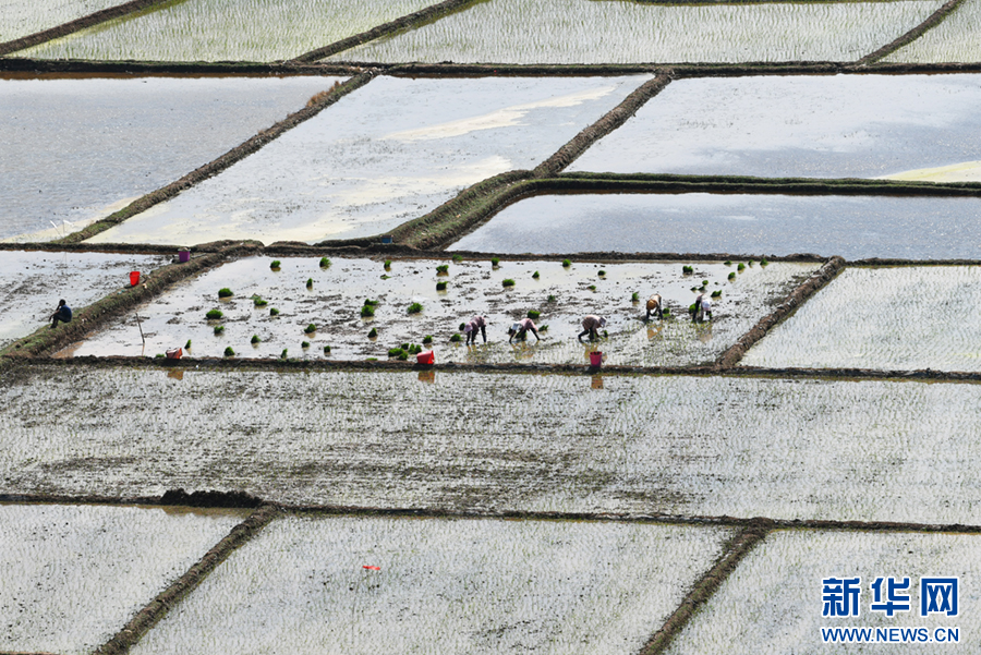 在云南省麗江市永勝縣三川鎮,水稻栽插工作正有條不紊地進行(5月31日攝)。新華網發( 趙慶祖 攝)