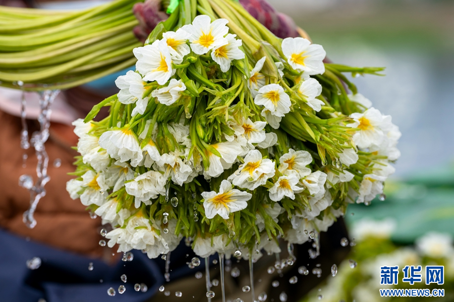 “仙氣飄飄”的海菜花(攝于6月5日)。新華網發(羅新才 攝)