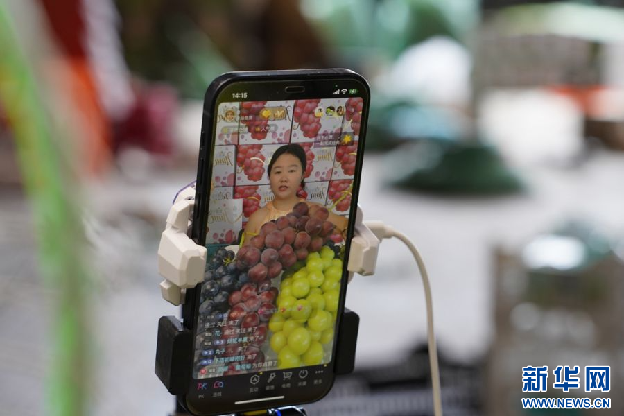 主播通過電商平臺銷售新鮮上市的葡萄(6月3日攝)。新華網發(楊金蕾 攝)